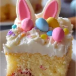 This Easter Bunny Poke Cake is a playful, crowd-pleasing dessert that combines tender cake, creamy pudding, and light whipped topping for a spring-ready finish. The cake bakes up soft and moist, and when you poke holes and pour on the vanilla pudding, every bite becomes lusciously filled. The whipped topping adds a cool, airy contrast, while pastel jelly beans and candy-coated chocolates bring a sweet, crunchy pop and cheerful color. The shredded coconut gives a fluffy texture for the bunny ears, and optional candy eyes or licorice strips let you personalize the design.
