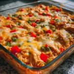 This Fajita Chicken Casserole is a cozy, flavor-packed weeknight meal that brings the warm, smoky notes of fajitas into an easy, one-dish bake. Bright roasted bell pepper and onion pieces mingle with tender shredded chicken and soft instant rice, while cream of chicken soup and sour cream create a silky, comforting sauce. The diced tomatoes with green chilies add a gentle kick and a fresh, tangy balance. Texture is pleasingly layered: creamy and saucy in every bite, with tender rice and juicy chicken throughout. The aroma while baking is inviting, with savory broth and roasted peppers filling the kitchen. This recipe is ideal for busy evenings, potlucks, or when you want a hearty family dinner that doubles as a great leftover. It reheats well, making it perfect for meal prep or bringing to a gathering when you need something both simple and satisfying.